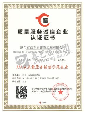 廈門市鑫藝宏建設(shè)工程有限公司---國家一級資質(zhì)企業(yè),自2004年成立以來,以卓越的品質(zhì)和一流的服務(wù)領(lǐng)先行業(yè),逐步擴展成多元化的現(xiàn)代化綜合型企業(yè)。